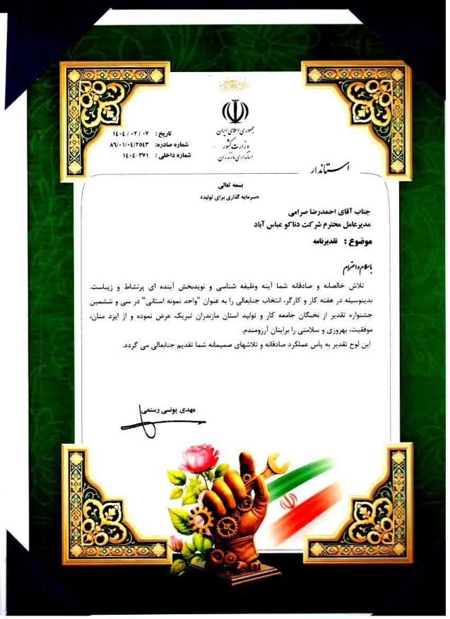 خلاصه خبر: واحد نمونه استانی 1404 روز کار و کارگر